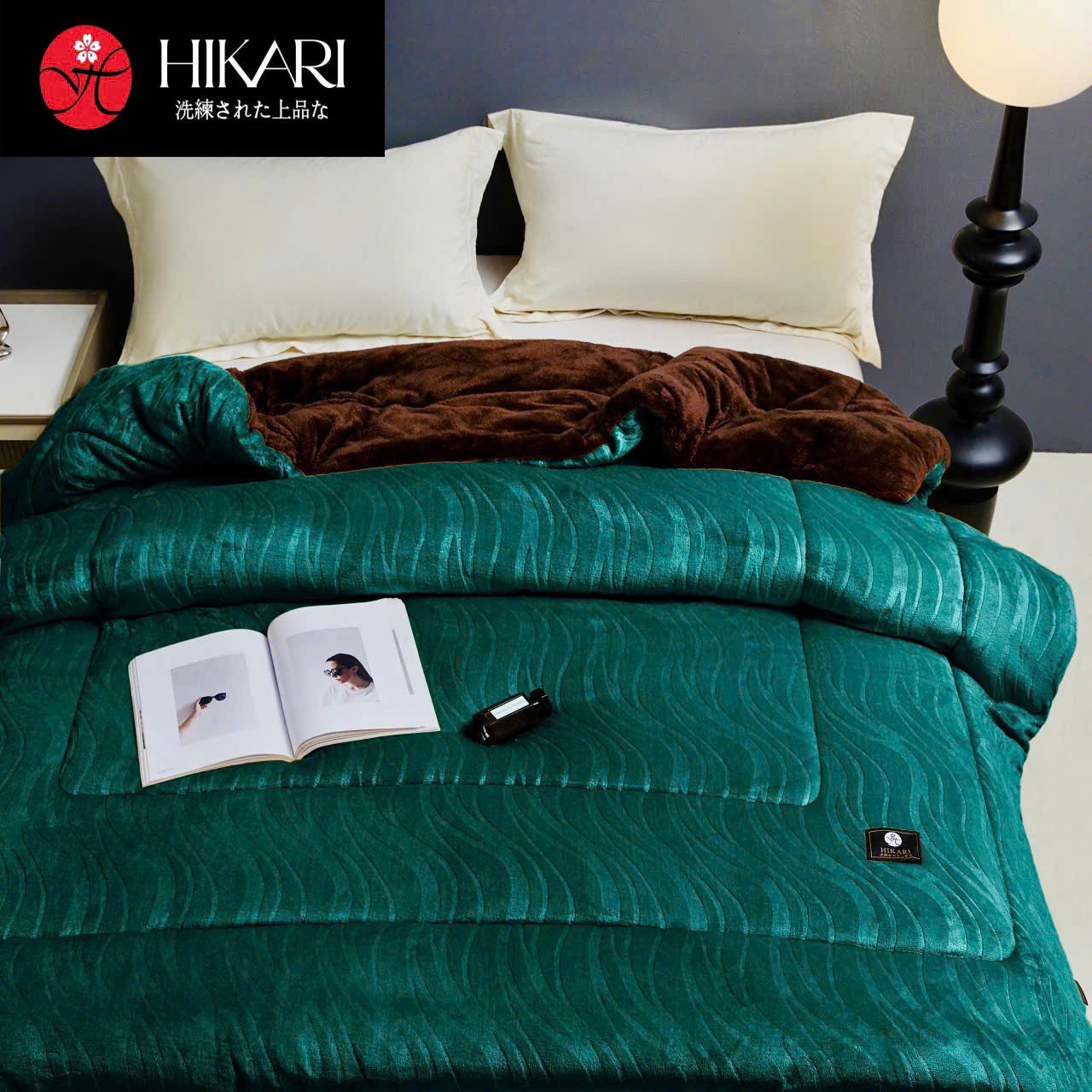 ヒカリジャパン 加熱フリースブランケット – グリーン