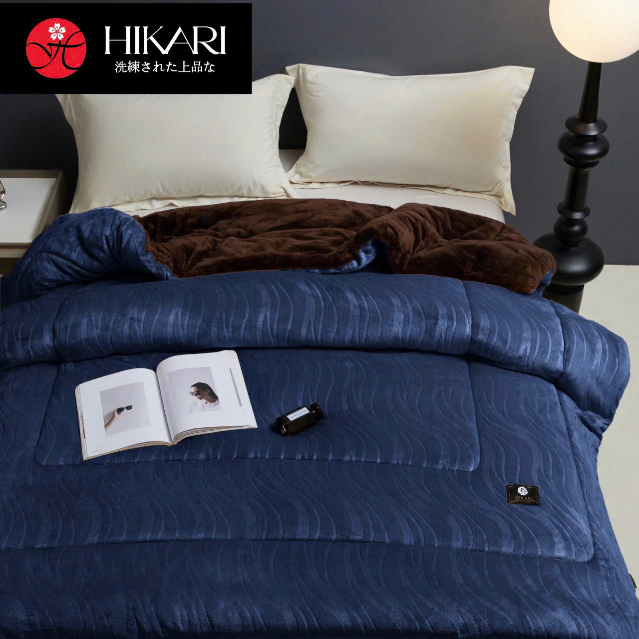 ヒカリジャパン 加熱フリースブランケット – チャコールパープル